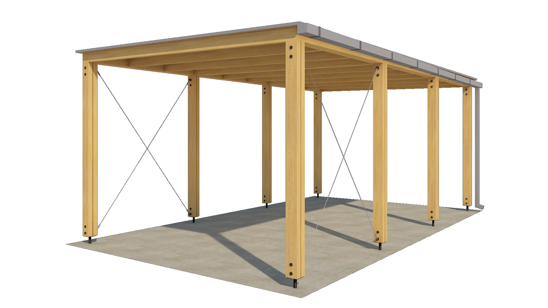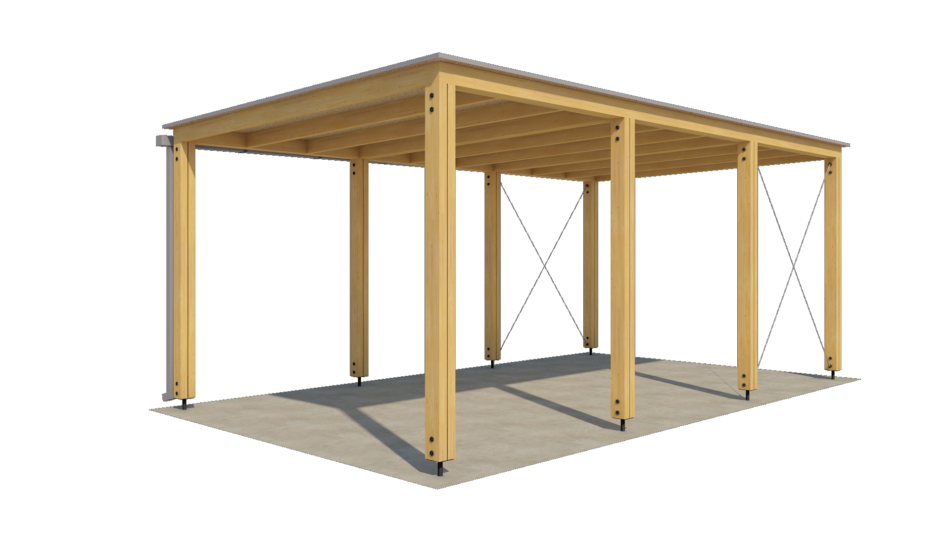 Prístrešok pre auto NATURliving P 6x3 m je najjednoduchšie vyzerajúci drevený prístrešok na trhu, napriek tomu spĺňa všetky požiadavky na pohodlné zakrytie vášho auta. Prístrešok sa skladá z pevnej konštrukcie zo stĺpov a trámov a mierne sklonenej jednostrannej strechy. Prístrešok NATURliving P 6x3 m možno ľahko kombinovať so záhradnými domčekmi NATURliving S a vytvoriť tak integrovaný úložný priestor pre všetko vaše záhradné náradie.