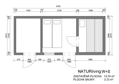 NATURLIVING W+S je vonkajšia sauna pre 2 až 3 osoby, spojená s relaxačnou miestnosťou, na ktorú nadväzuje úložný priestor na záhradné príslušenstvo.