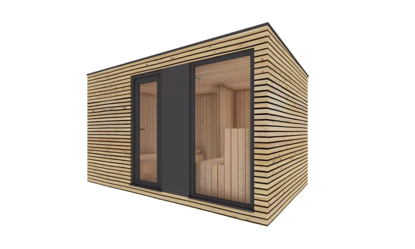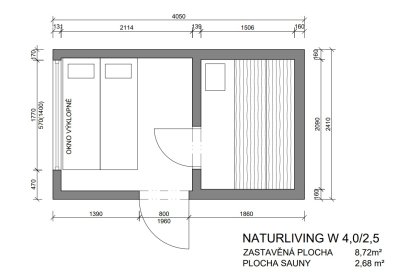 NATURLIVING W4x2,5 je vonkajšia sauna pre 2 až 3 osoby, spojená s relaxačnou miestnosťou.