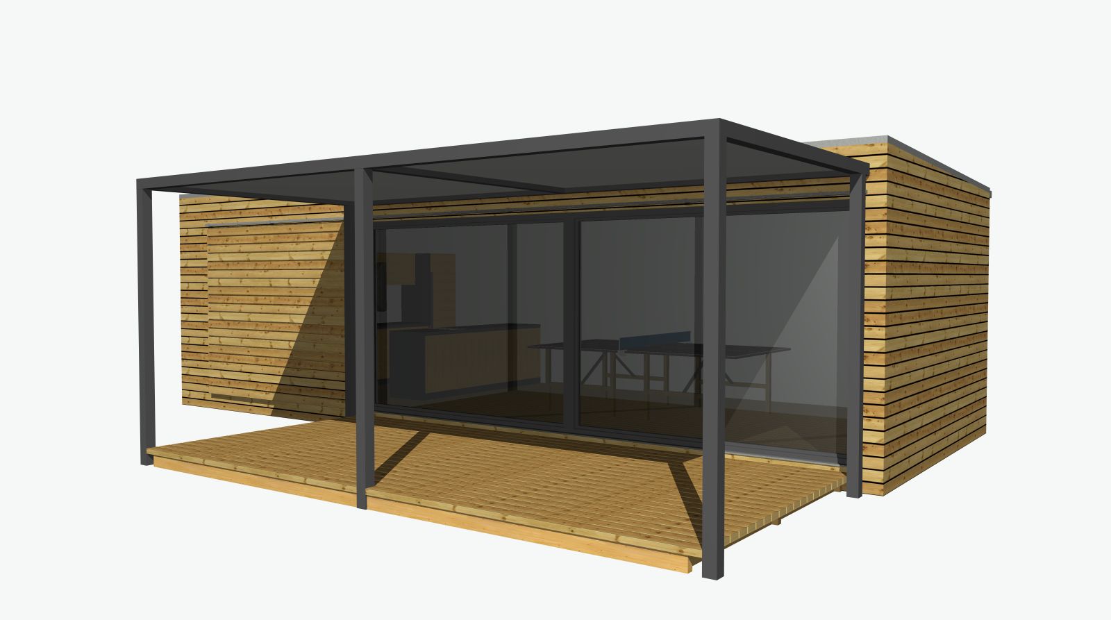 Party House L je záhradný domček s rozmermi 9 x 4 m, ktorý pojme až 12 osôb. Je ideálny na narodeninové oslavy, slávnosti, rodinné stretnutia a podobné podujatia. Ak sa počasie pokazí, nemusíte svoju záhradnú oslavu rušiť – stačí sa presunúť dovnútra. Domček pozostáva z veľkej miestnosti, do ktorej sa zmestí kuchynský kút, a samostatných toaliet. K domčeku je možné pripojiť terasu a pergolu.