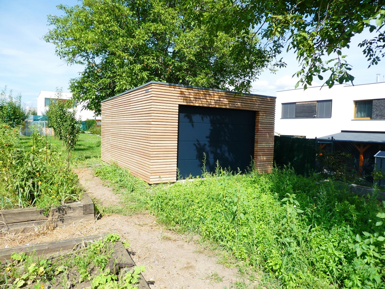 Drevená garáž, ktorá zjednotila záhradu a vniesla poriadok do techniky