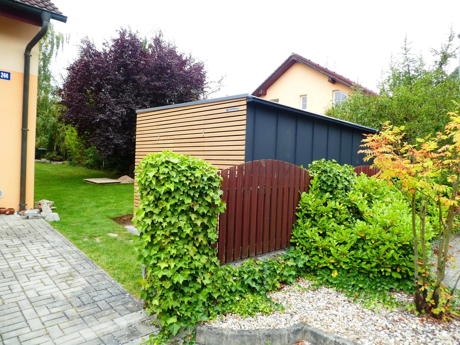 Veľkou výhodou tejto realizácie je jej umiestnenie priamo na hranici pozemku pri plote, čím sa maximálne využil priestor záhrady a zároveň zostalo zachovaný dostatok voľnej plochy na ďalšie využitie.