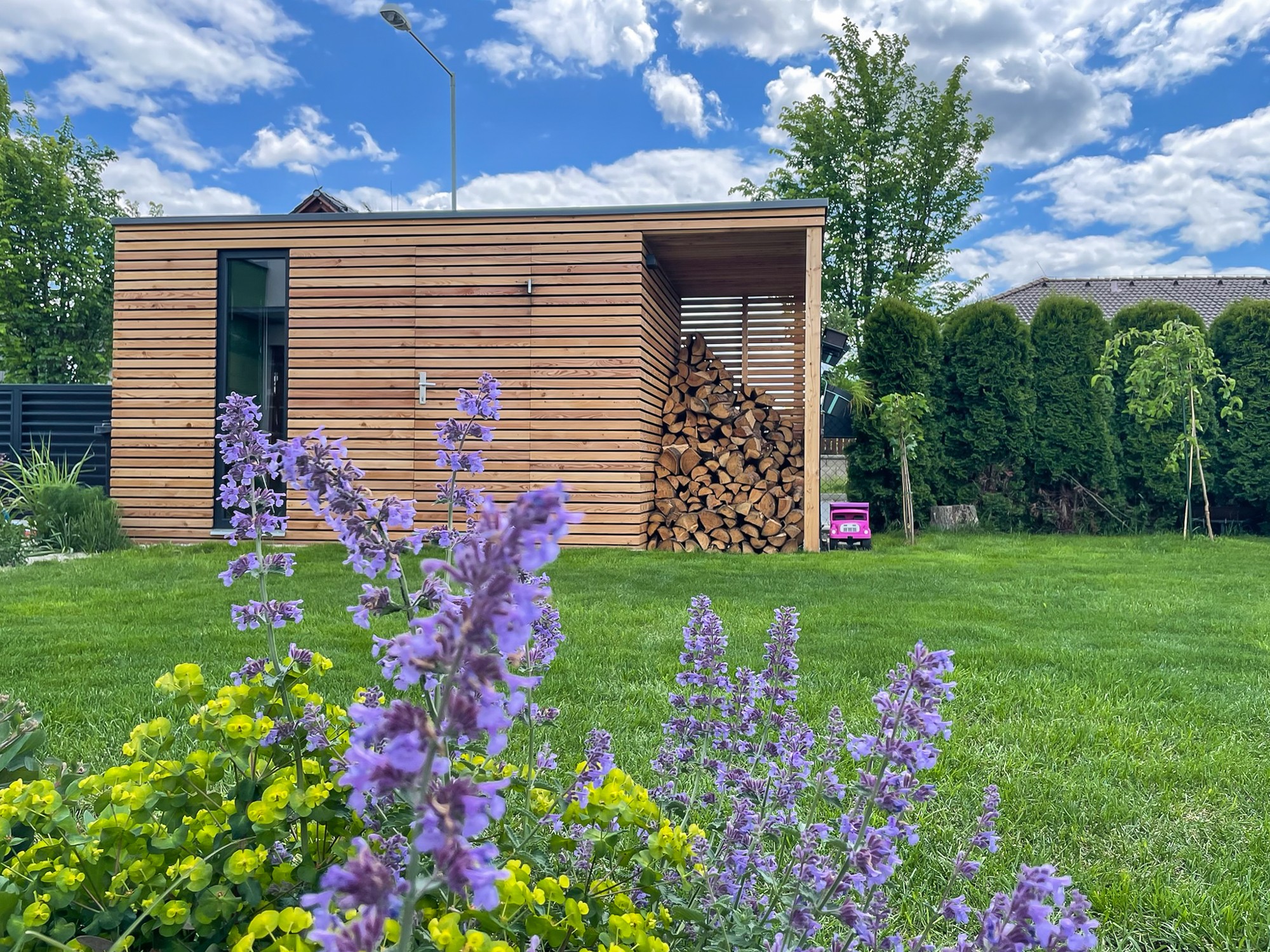Táto realizácia moderného záhradného domčeka s integrovanou drevárňou patrí už dlhodobo medzi najobľúbenejšie projekty značky Naturliving. Vznikla v Plzni ako odpoveď na dopyt po praktickom, ale zároveň dizajnovo čistom záhradnom objekte, ktorý nebude pôsobiť rušivo, ale naopak prirodzene doplní architektúru rodinného domu i celej záhrady.