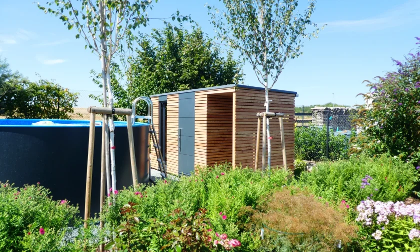 | Doplnky | Desky Fundermax přesah střechy přístřešek na dřevo |