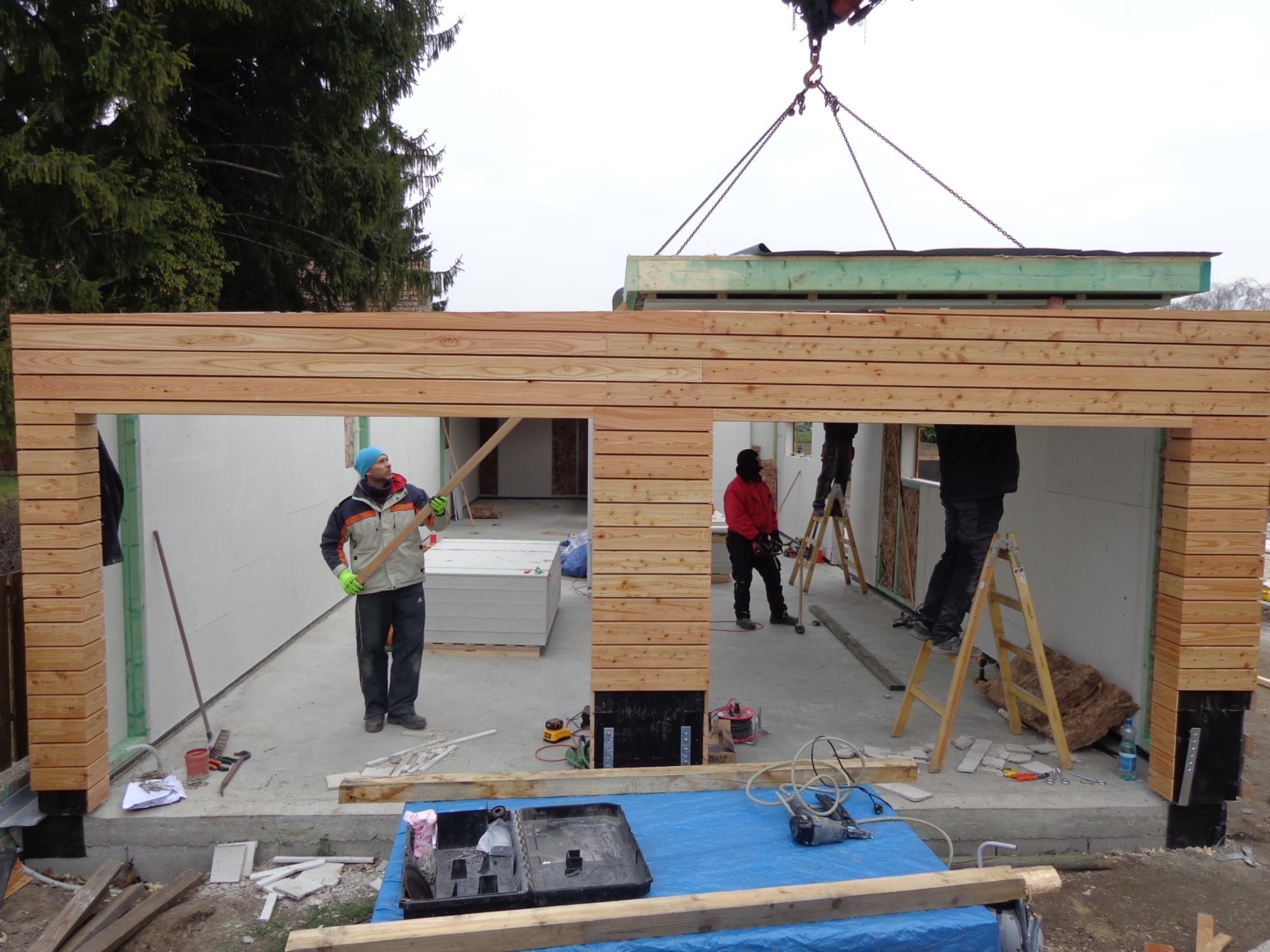 Montovaná dvojgaráž 11,4 x 6,4 m + záhradný sklad - Bad Deutsch