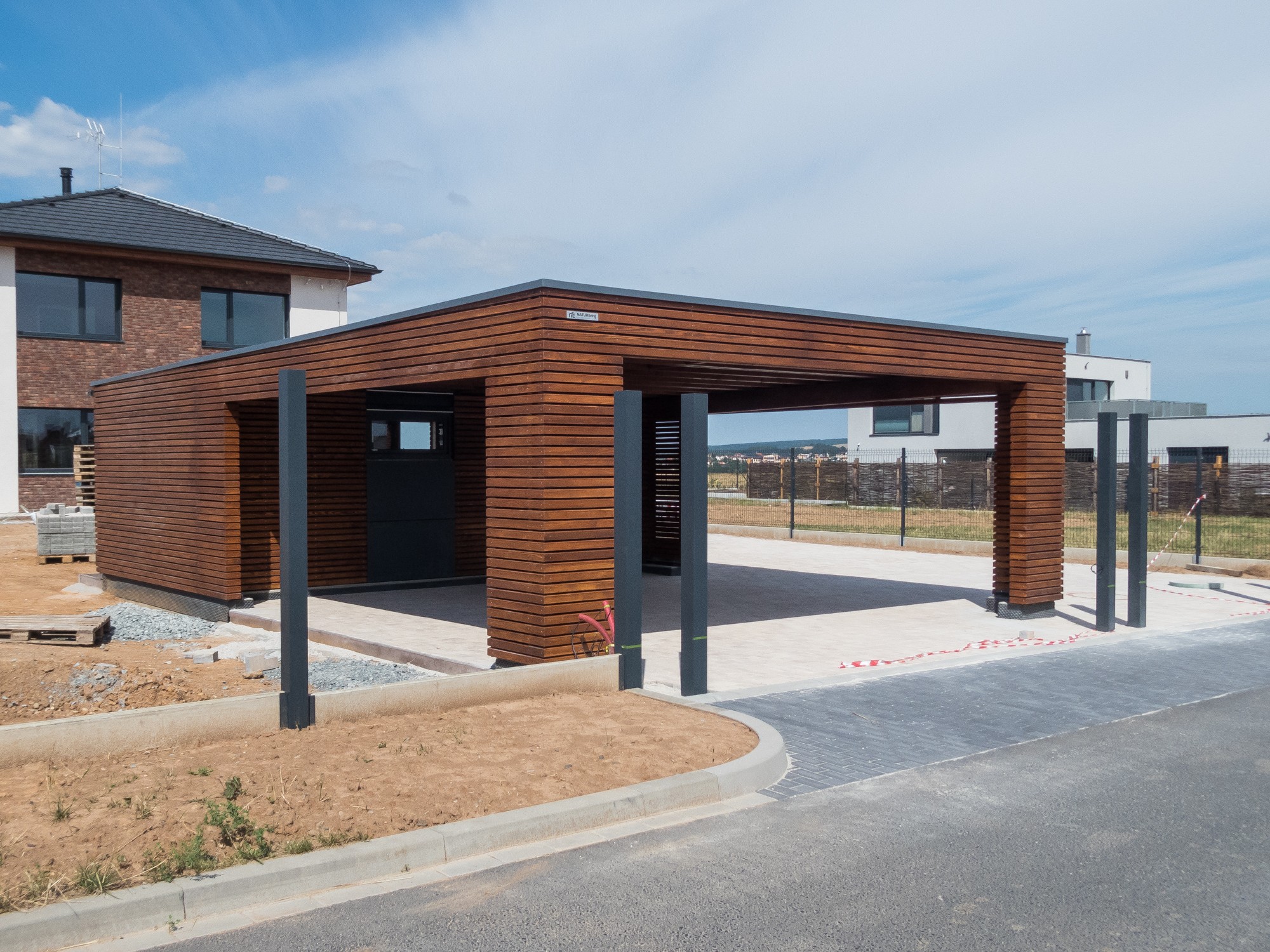 Stavba ponúka flexibilitu do budúcnosti – prístrešok môže slúžiť aj ako kryté posedenie, pracovný priestor alebo miesto pre návštevy. Klient získal praktické riešenie bez kompromisov medzi estetikou a funkčnosťou.