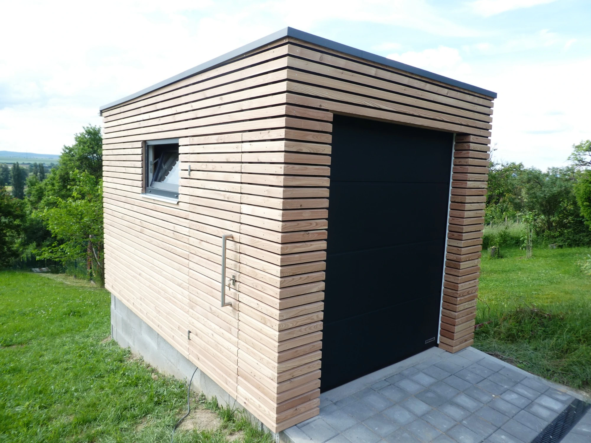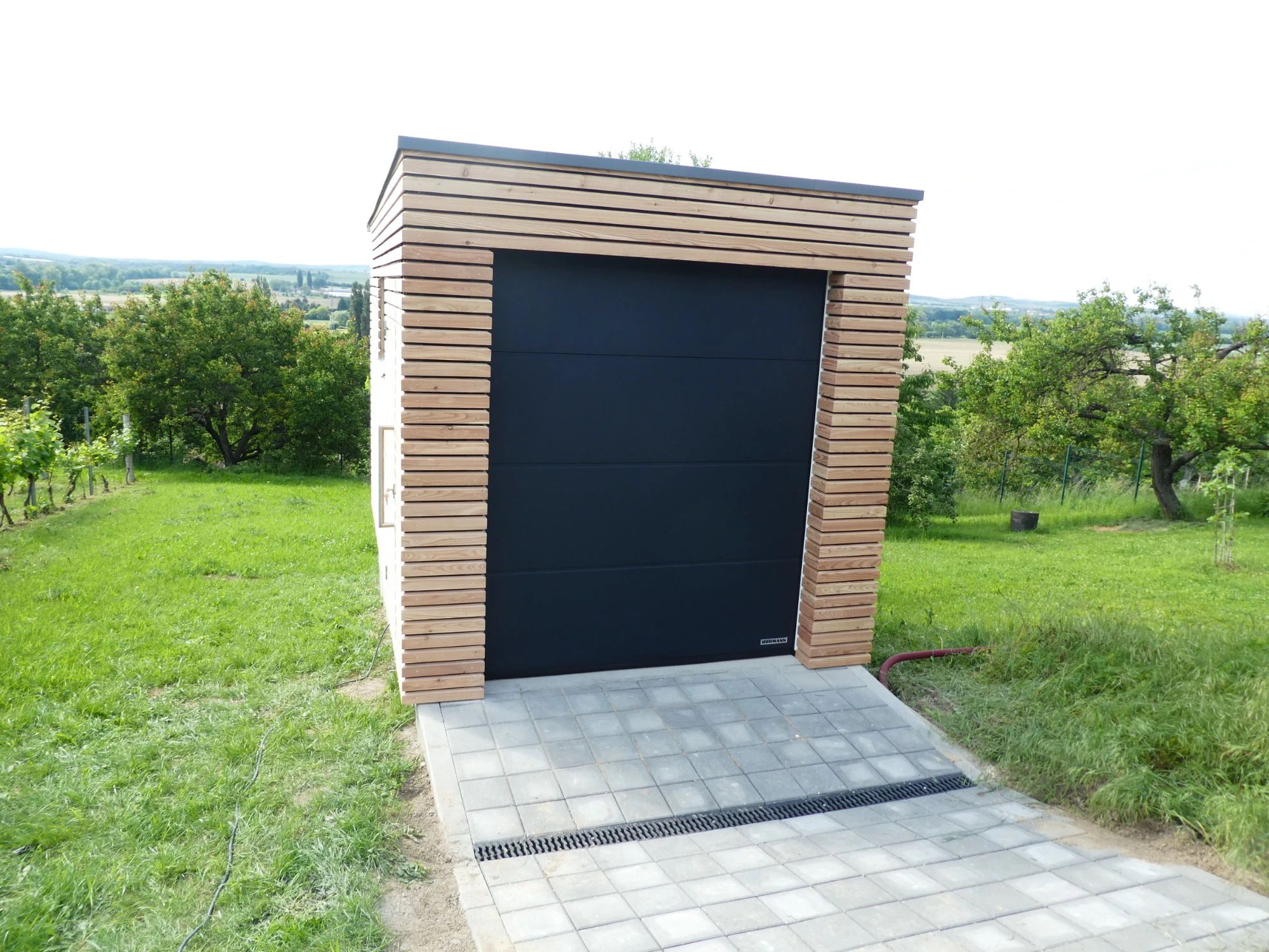 Veľkosť garáže sme presne prispôsobili konkrétnym potrebám klienta aj možnostiam pozemku. Vďaka starostlivo navrhnutým rozmerom sa stavba bez problémov zmestila do menšej záhrady, bez toho, aby bolo nutné robiť kompromisy v funkčnosti. Konštrukcia je riešená ako drevená stavba s kvalitným dreveným obkladom, ktorý zaisťuje prirodzený vzhľad a dlhú životnosť.