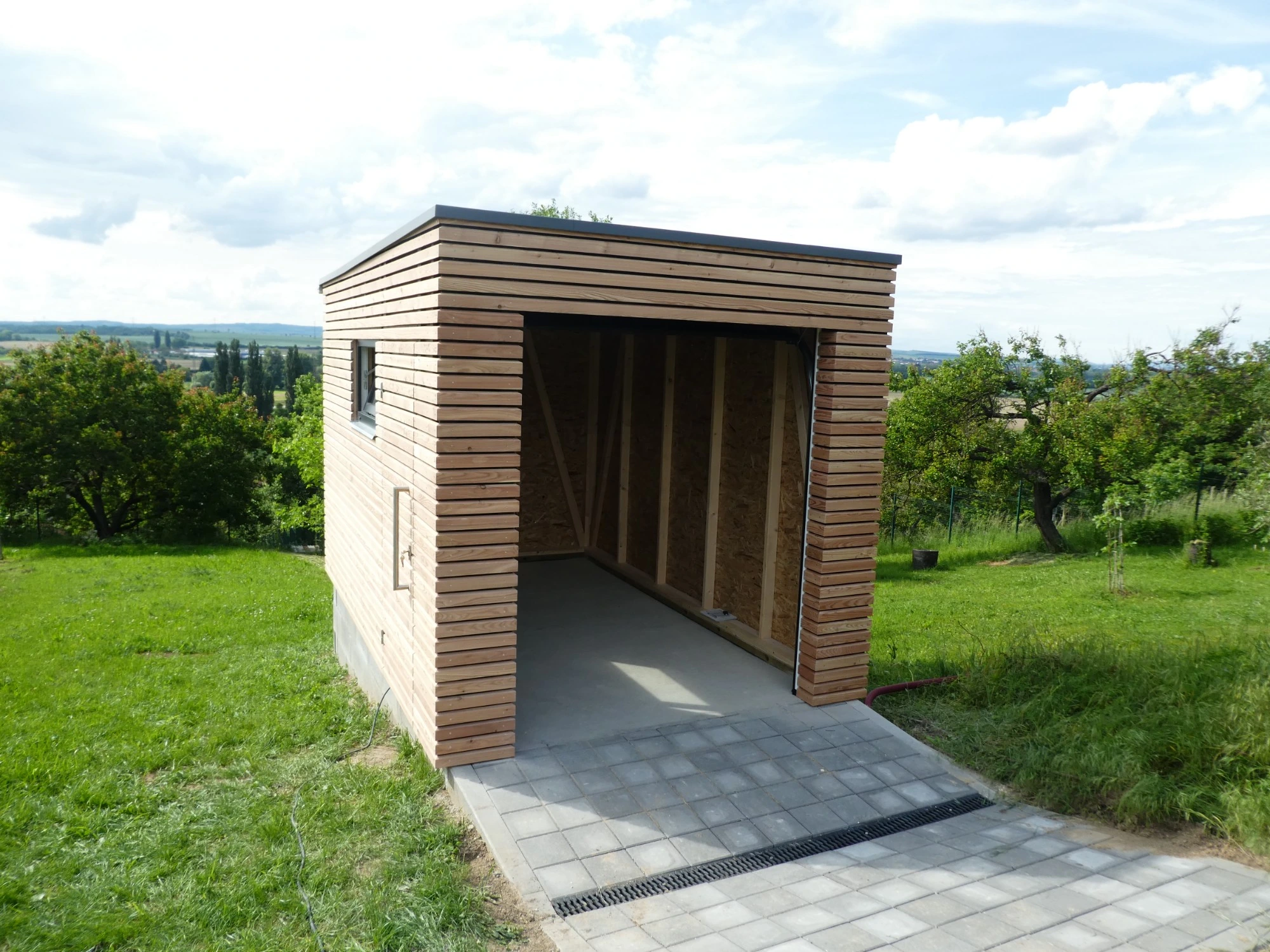 V tejto realizácii sme riešili typickú situáciu, s ktorou sa stretáva mnoho majiteľov rodinných domov – potrebu praktického úložného priestoru na techniku, ale zároveň obmedzený priestor na záhrade. Cieľom bolo navrhnúť garáž, ktorá bude funkčná, nenápadná a nebude záhradu opticky ani priestorovo zaťažovať.